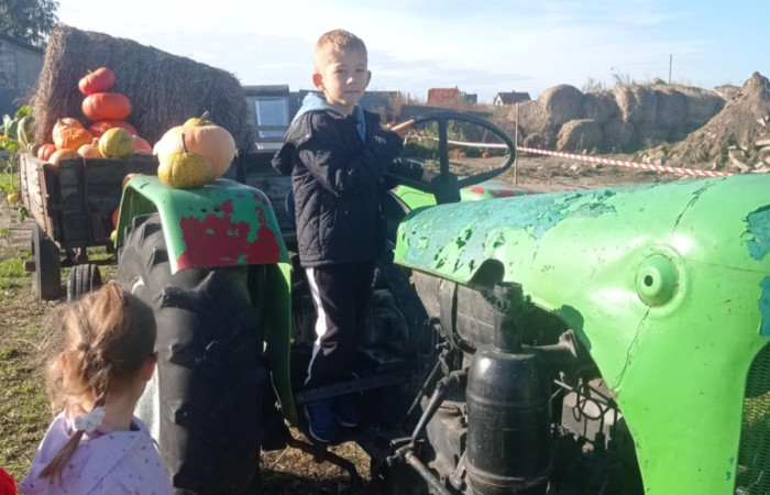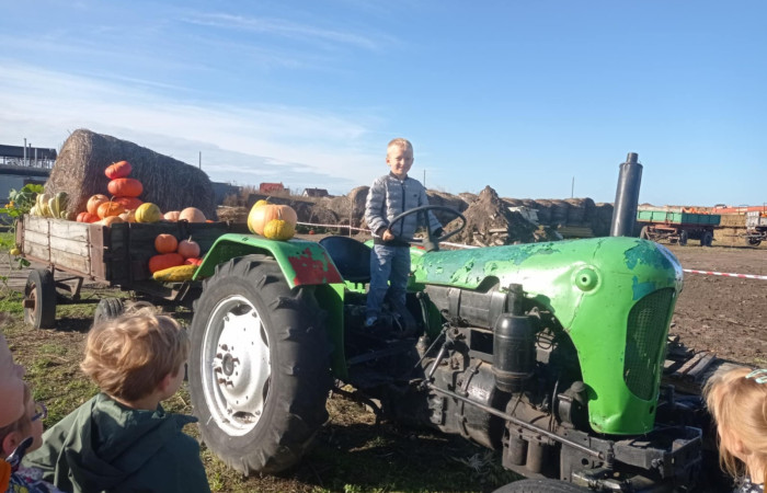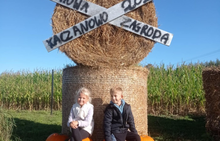 23 września Niedźwiadki wybrały się na wycieczkę do Kaczanowa na Farmę Dyni. To była wspaniała okazja na powitanie jesieni. Poznaliśmy zasady uprawy roślin, oglądaliśmy duże pole dyniowe i przede wszystkim samodzielnie szukaliśmy odpowiedniej dla siebie dyni. Obserwowaliśmy zwierzęta gospodarskie a niektóre z nich mogliśmy nawet pogłaskać i nakarmić. Największą atrakcją była zabawa w labiryncie z kukurydzy. Dzieci podczas wycieczki nie tylko wzbogaciły swoją wiedzę, ale także przez chwilę mogły poczuć się jak prawdziwi plantatorzy dyń. Wróciliśmy zmęczeni, ale z uśmiechem na twarzy.