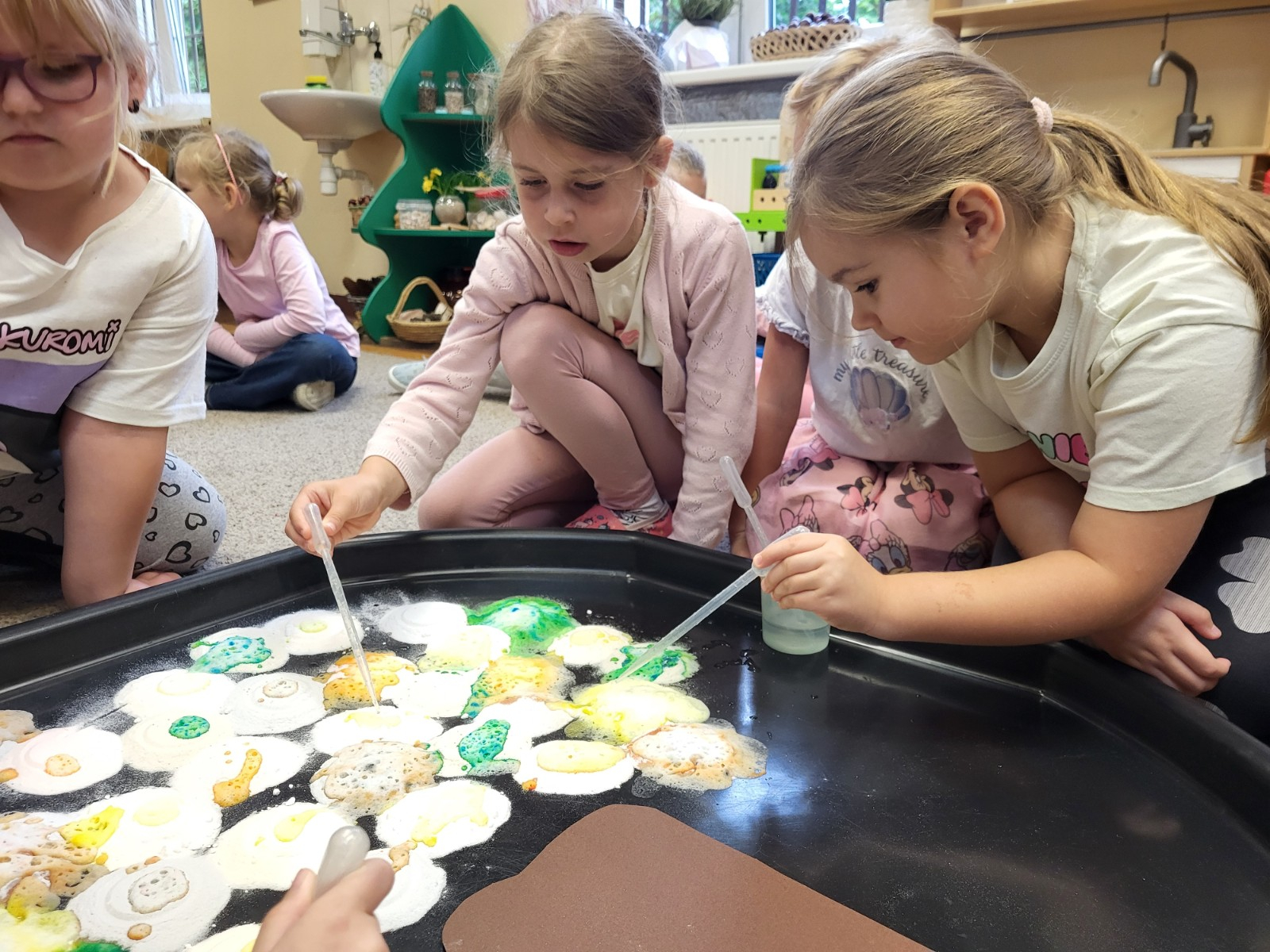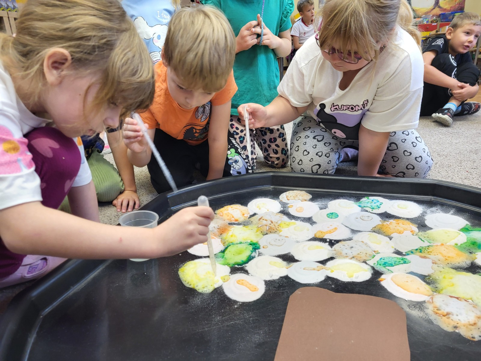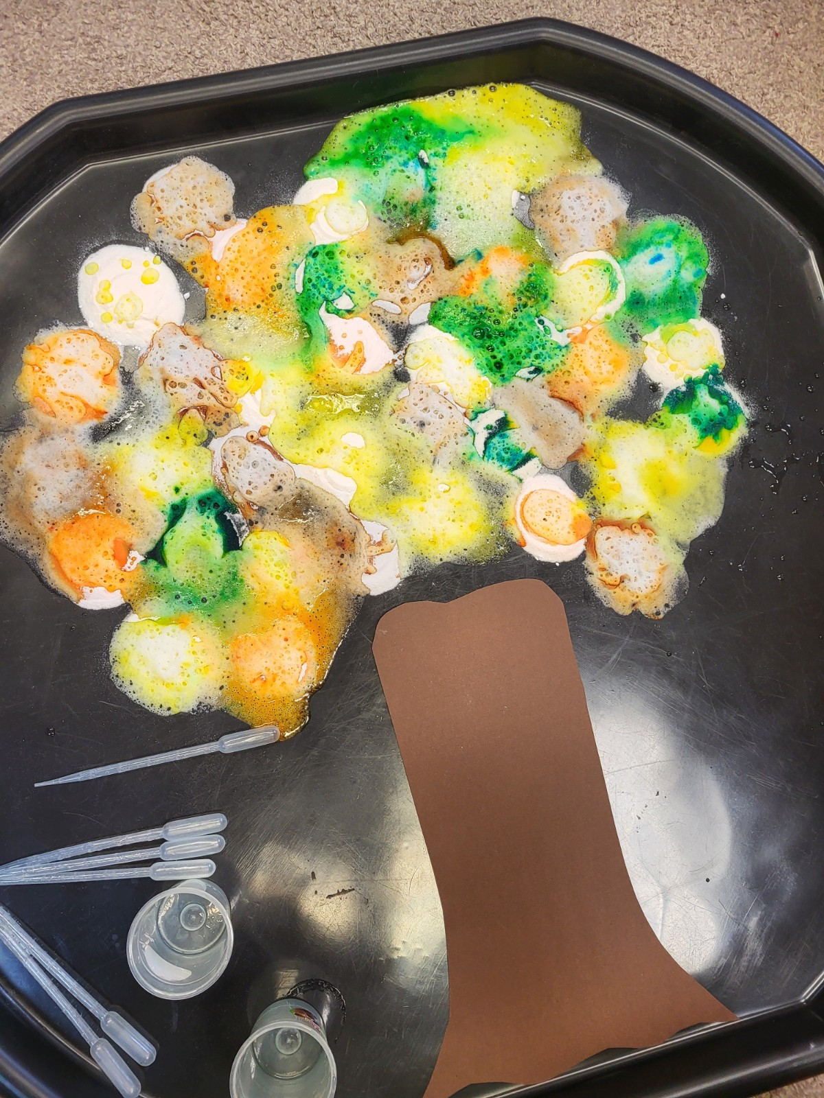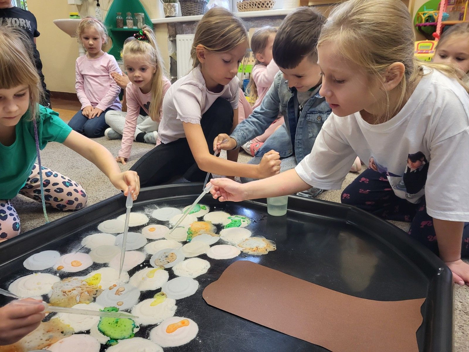 "Przyszedł do nas wrzesień, a z nim Pani Jesień" , śpiewamy w piosence. Postanowiliśmy jesień przywitać kolorami i stworzyliśmy musujące, kolorowe drzewo pełne sensorycznych doświadczeń. Zachwycaliśmy się nim wszyscy, bo oczarowało nas swoimi barwami:)