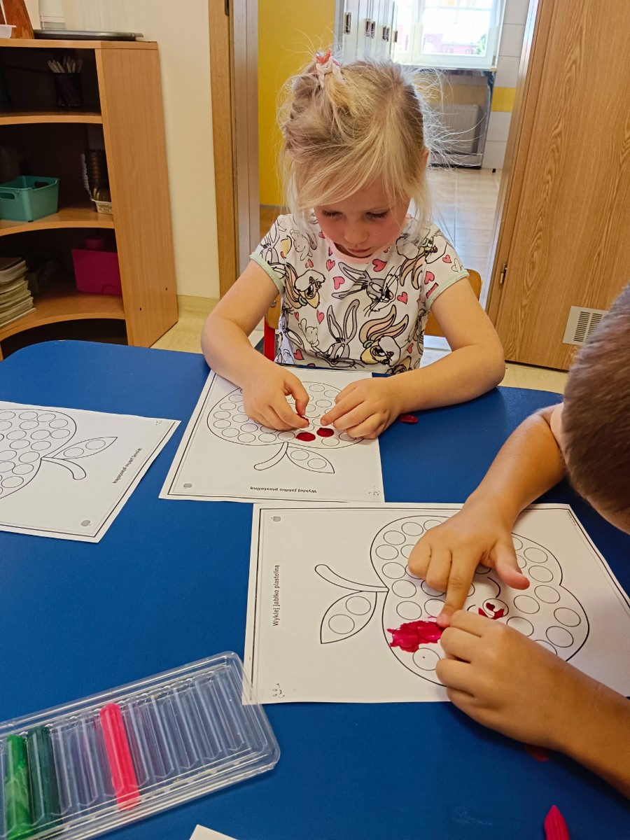 JEŻYKI poznały jabłka, ich odmiany, wartości odżywcze, uczyły się o nich poprzez zabawy, piosenki, zagadki, a także brały udział w warsztatach plastycznych i ćwiczeniach grafomotorycznych. :)