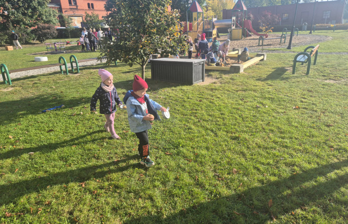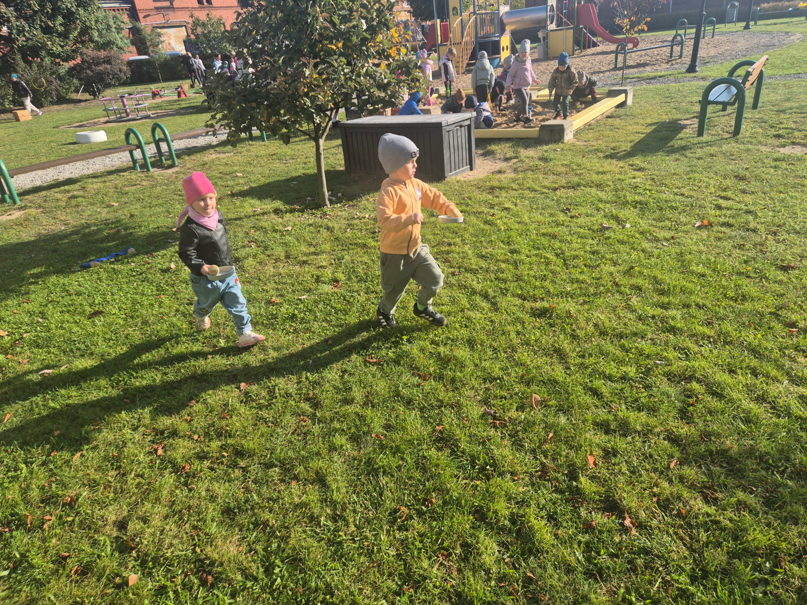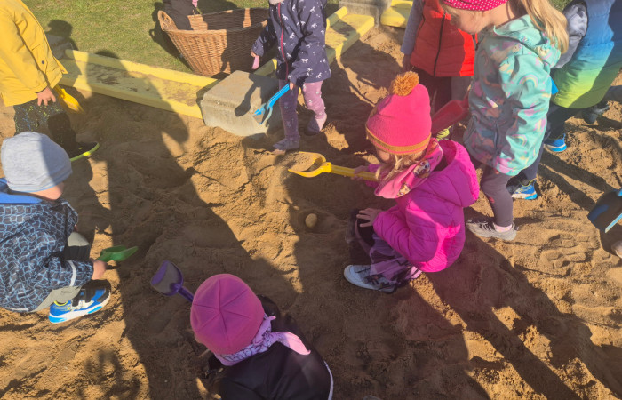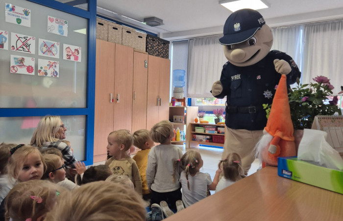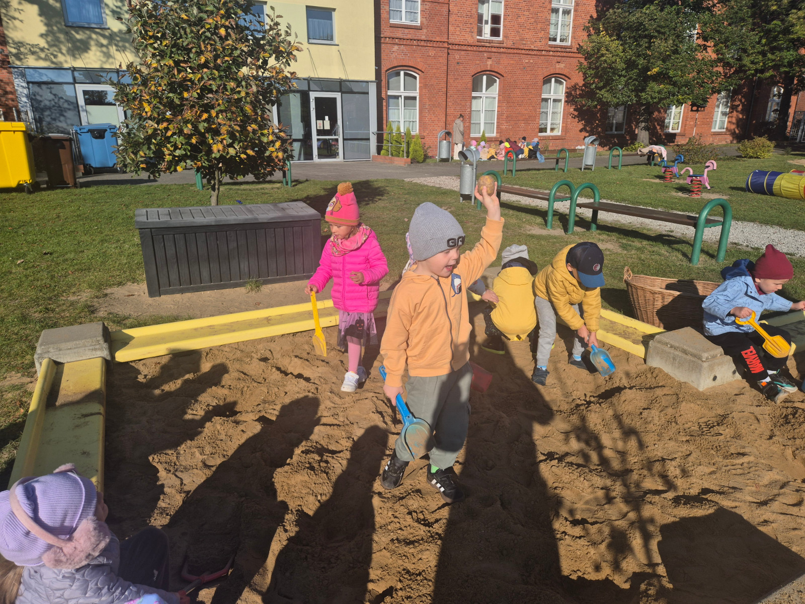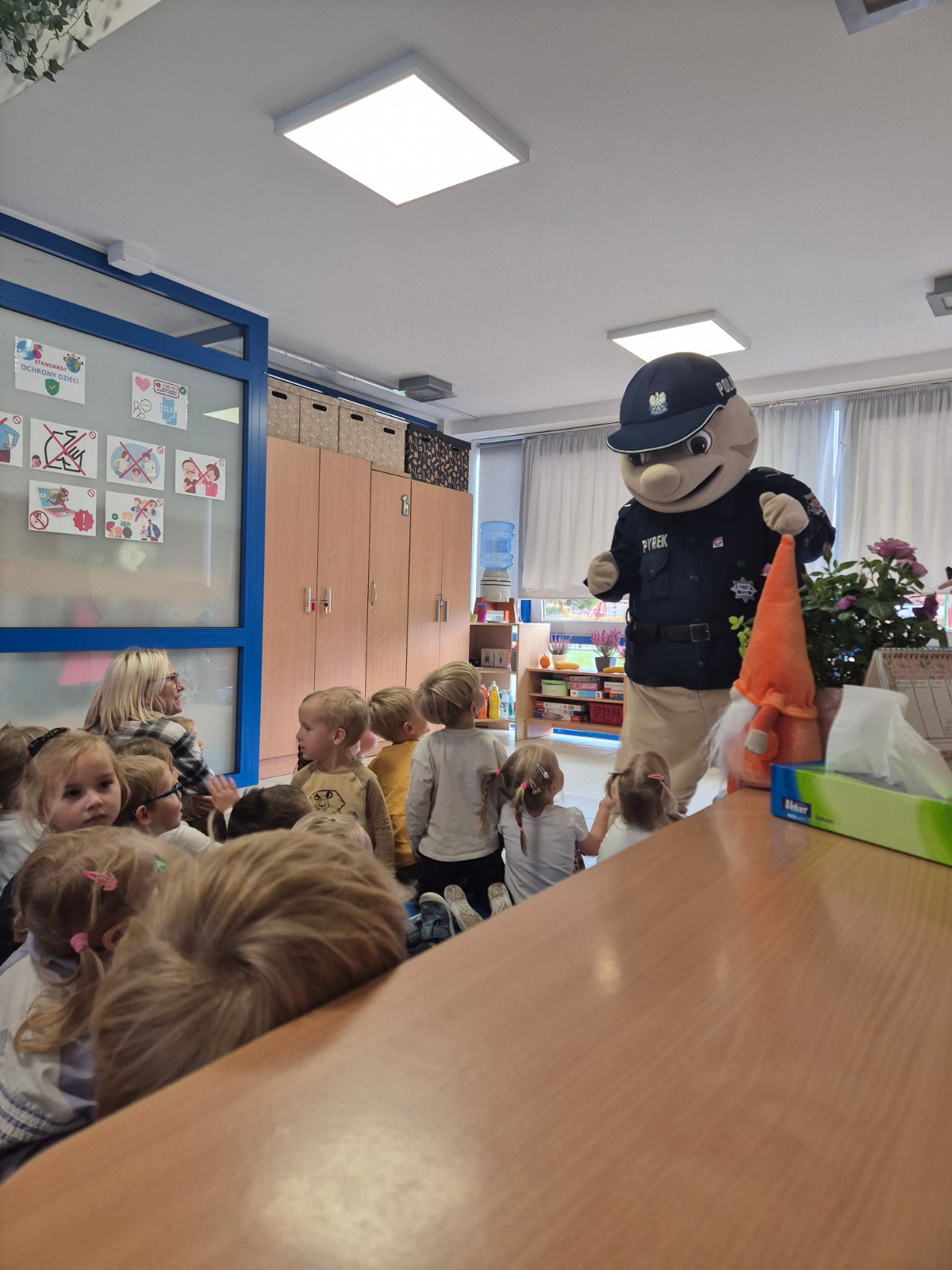 W ostatni czwartek świętowaliśmy w naszym przedszkolu Dzień Pieczonego Ziemniaka. Na szczęście pogoda dopisała i dzięki temu w naszym ogrodzie przedszkolnym odbyły się gry i zabawy ruchowe z ziemniakiem w roli głównej. Następnie udaliśmy się na spotkanie z policjantem, który wyjaśnił nam podstawowe zasady bezpieczeństwa oraz Pyrkiem, z którym zrobiliśmy sobie pamiątkowe zdjęcia. W przedszkolnym menu królowały tego dnia oczywiście ziemniaki!