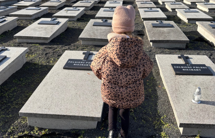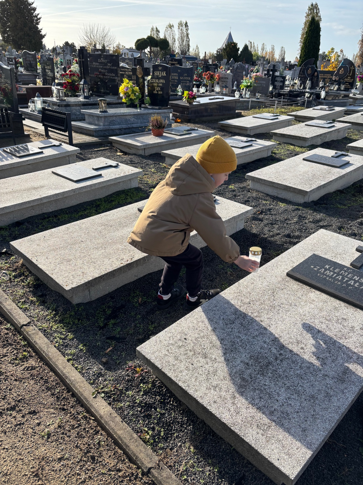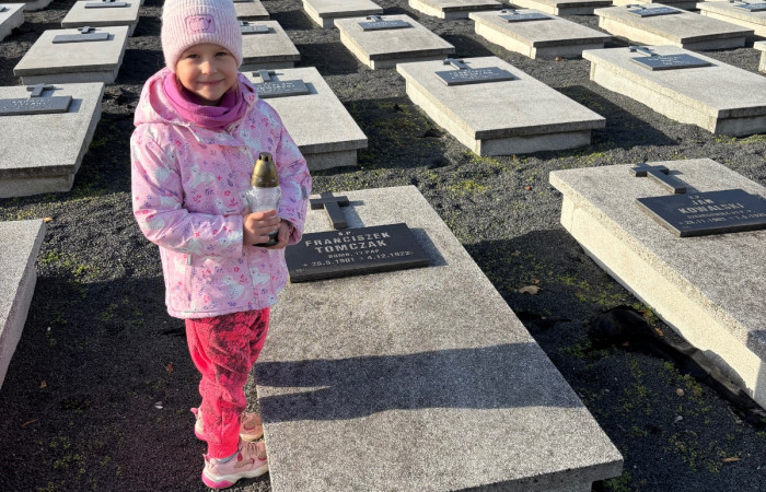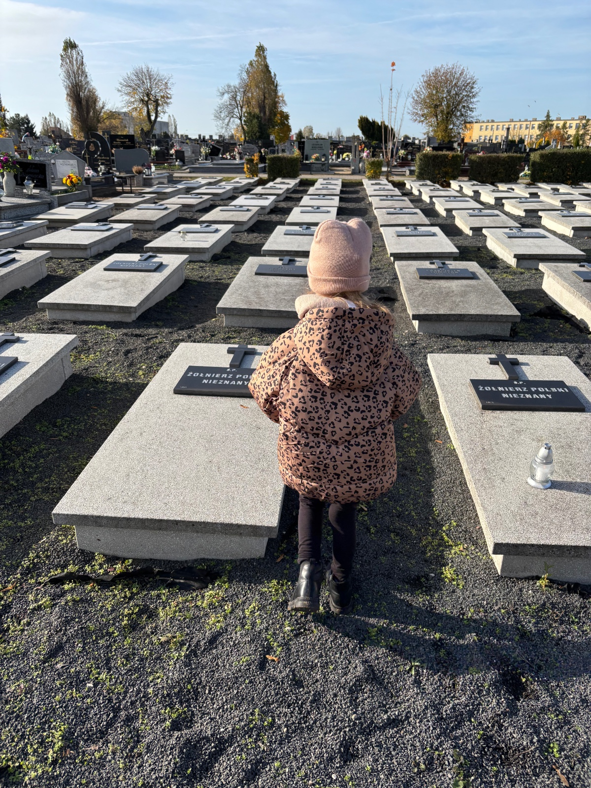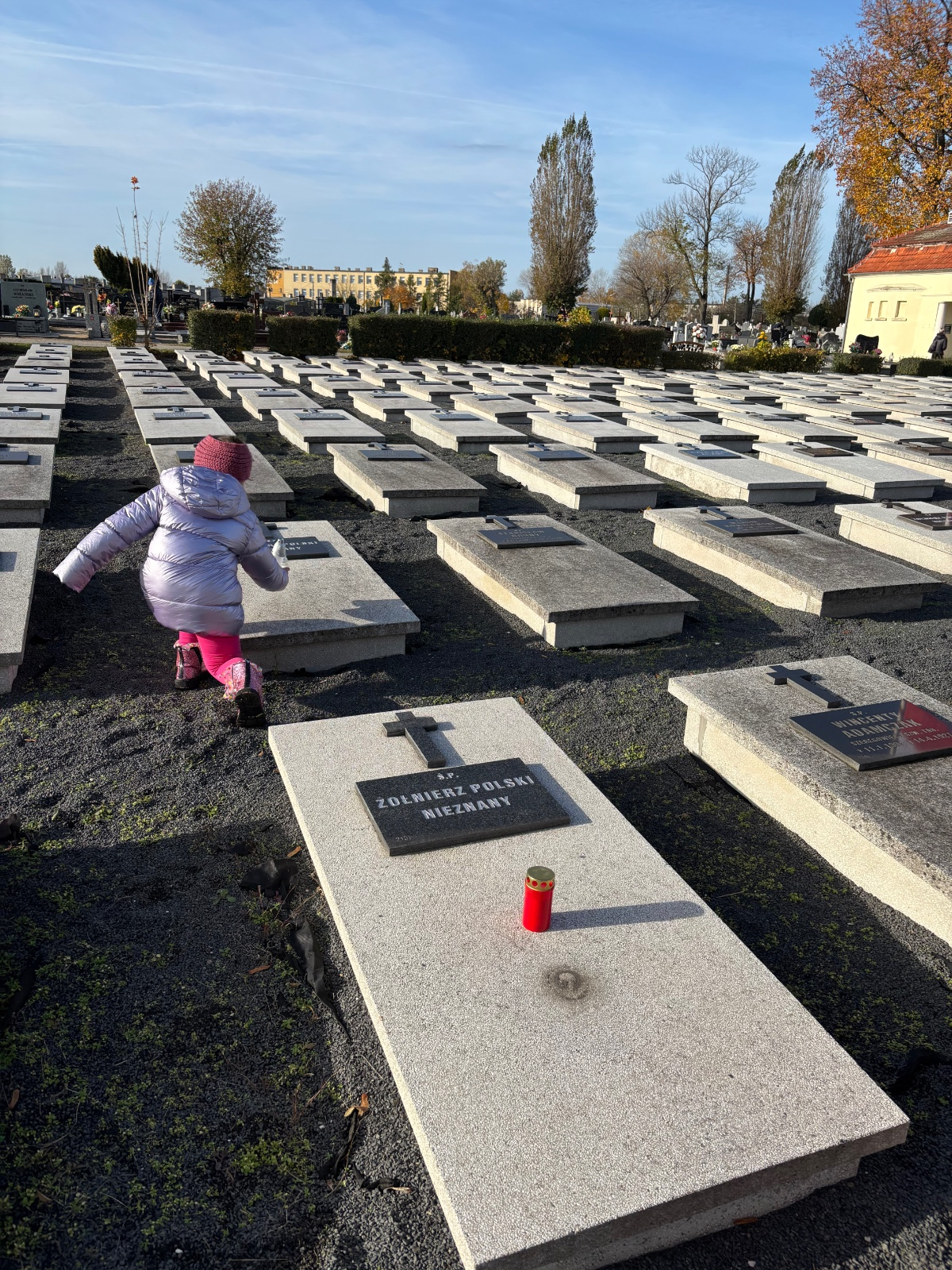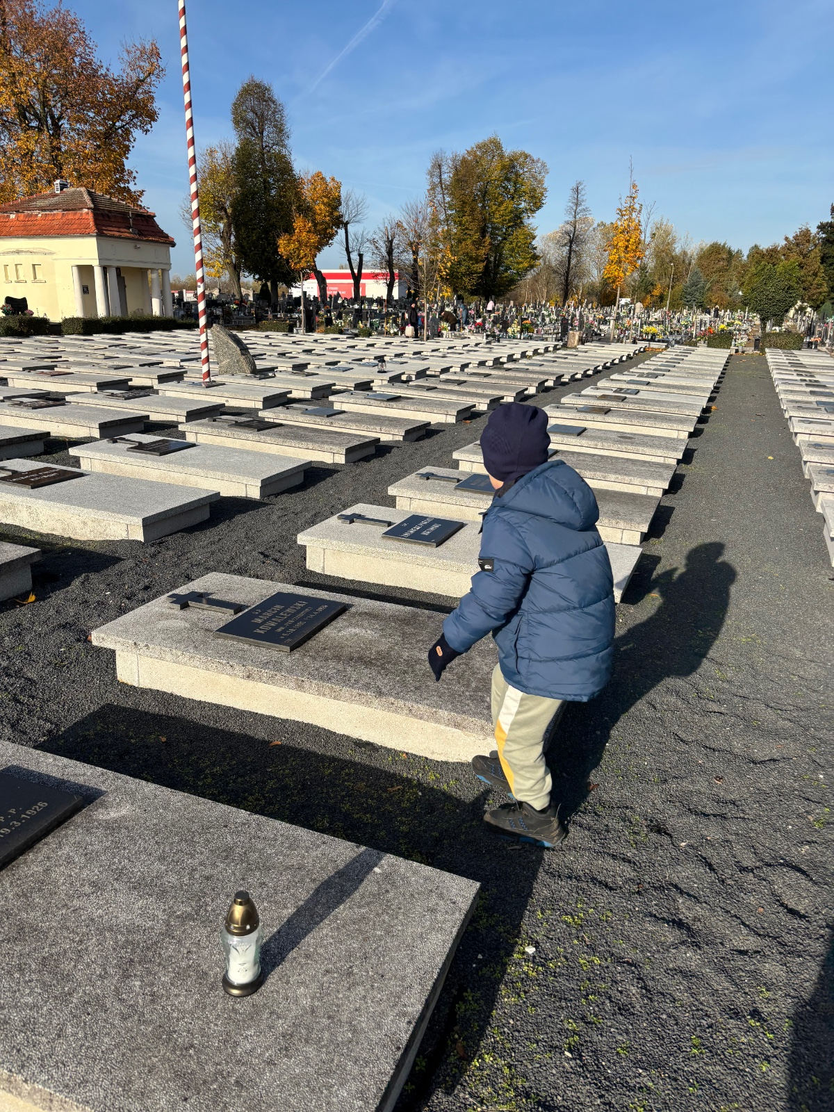 29 października dzieci z grupy „Jeżyki” korzystając z pięknej jesiennej pogody wybrały się na pobliski cmentarz przy ul. Witkowskiej, aby uczcić pamięć żołnierzy poległych za naszą Ojczyznę po I wojnie światowej. Jest to ważna lekcja wychowawcza, podczas której dzieci uczą się o pamięci, szacunku dla zmarłych i tradycji związanej ze Świętem Zmarłych.