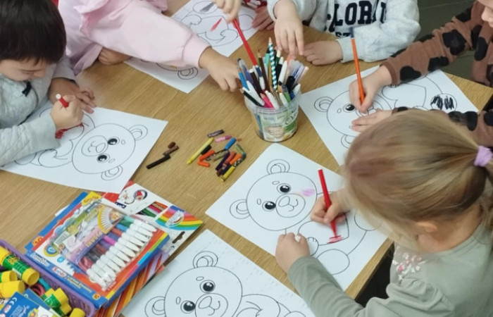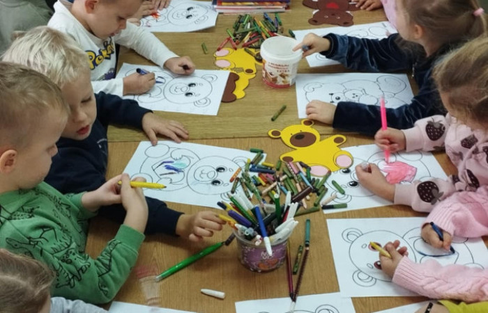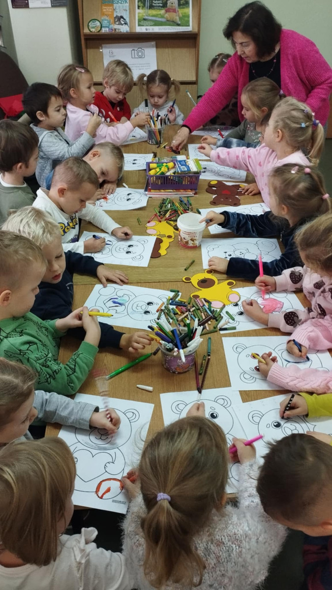 W ramach naszych cyklicznych odwiedzin w bibliotece, tym razem wybraliśmy się na zajęcia z Misiami. Pani Ania wprowadziła dzieci w temat czytając im książeczkę z serii "Miś Koralik" i opowiadając o znajomych misiach z bajek i kreskówek. Następnie dzieci kolorowały wizerunek misia. Przy okazji wypożyczyliśmy książeczki, które nasze Panie przeczytają nam w przedszkolu :) To już kolejne odwiedziny w tym miejscu i wrócimy tu na pewno!