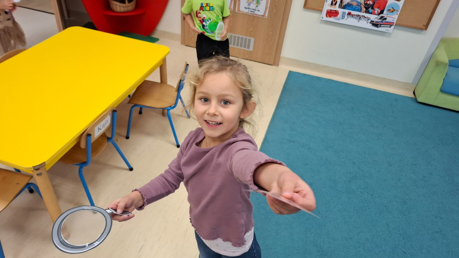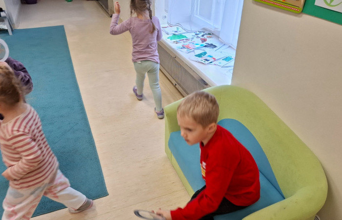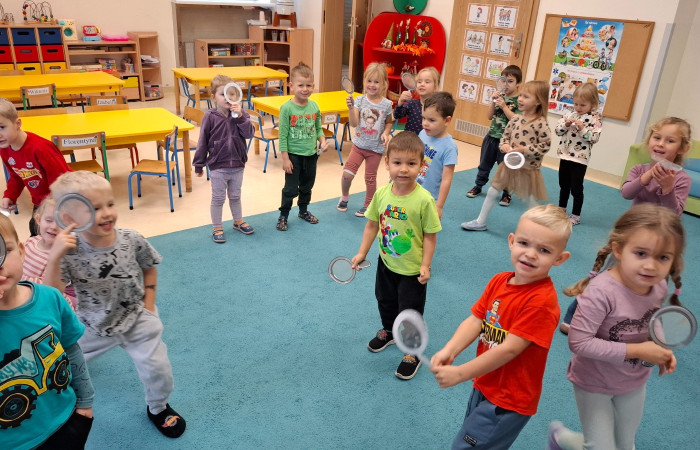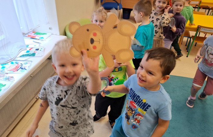 24 listopada grupa Żabek zamieniła się w prawdziwych detektywów! W ramach listopadowego projektu English Detectives przedszkolaki wyruszyły na wyjątkową misję – odszukać brakujące części ciała misia. Wyposażone w lupy, z ogromnym zaangażowaniem przeszukiwały salę, odnajdując ukryte obrazki i rozwiązując przygotowane zagadki w języku angielskim.
