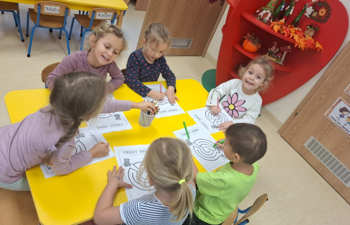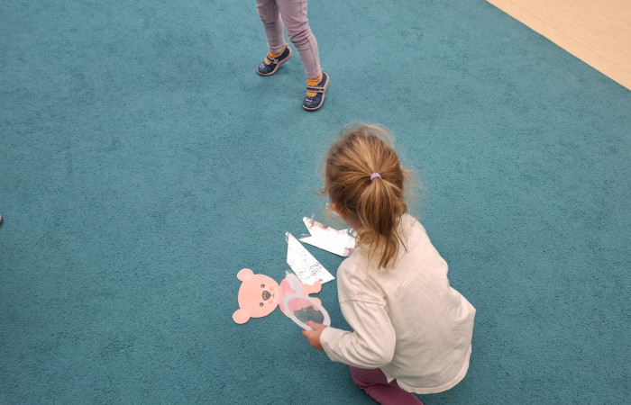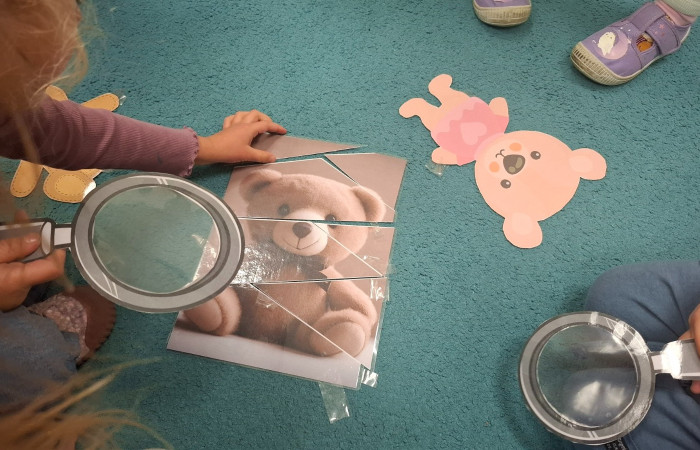 Po odnalezieniu wszystkich elementów dzieci wspólnie ułożyły puzzle oraz zmierzyły się z labiryntami. Zabawa połączyła naukę języka angielskiego, rozwijanie spostrzegawczości oraz kreatywne działanie, wpisując się także w obchody Dnia Pluszowego Misia.