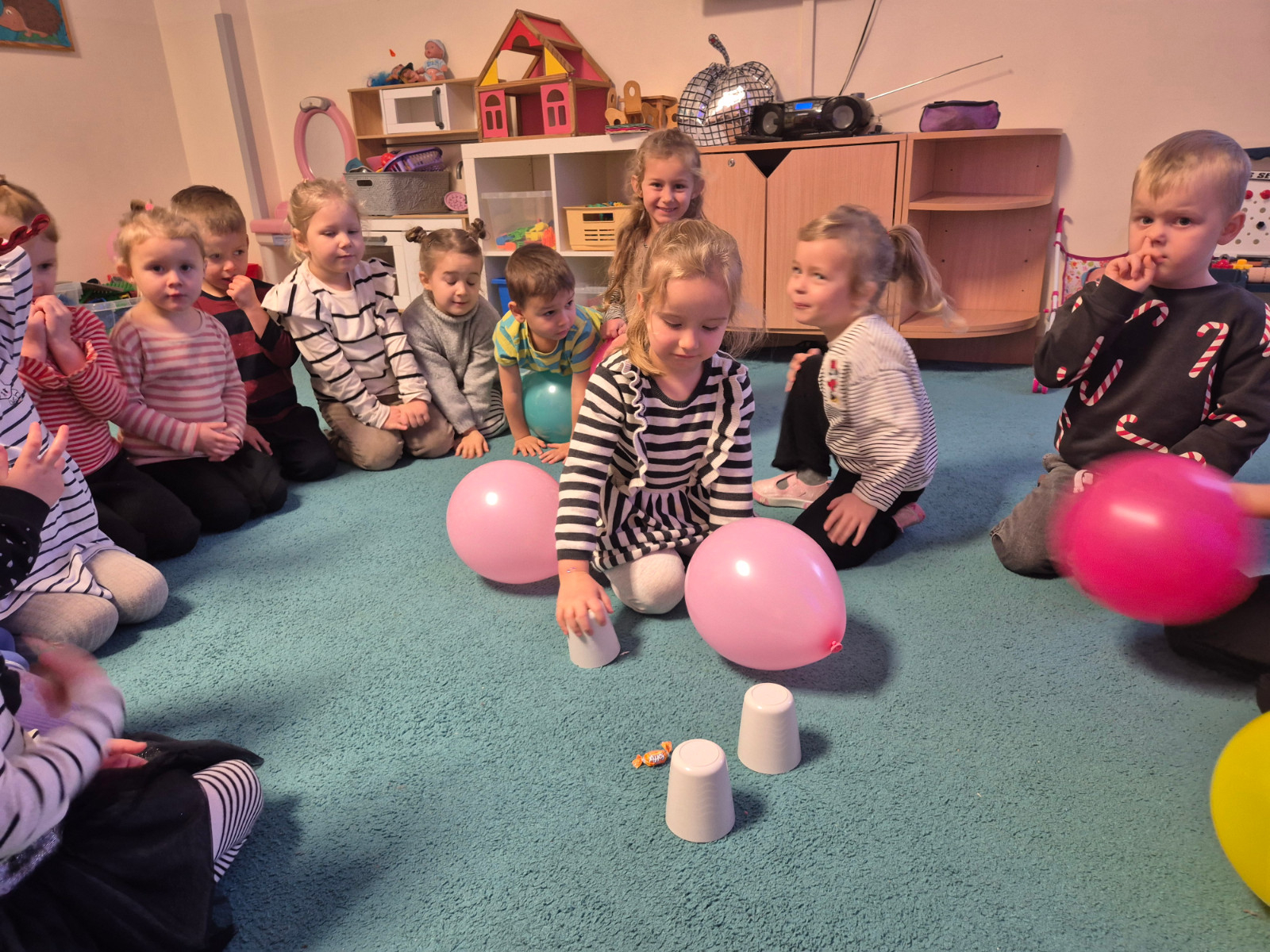 W ostatni piątek listopada nasze Przedszkolaki przeniosły się w magiczny świat wróżb i zabaw andrzejkowych. Dzieci mogły „poznać swoją przyszłość” – tą bliską i tą daleką… „kim będę w przyszłości”, „co mnie czeka” itp. Sprawdzaliśmy także jakie części garderoby u poszczególnych dzieci są w paski. Wśród atmosfery tańca i zabawy, ten magiczny dzień był okazją do zapoznania się z tradycją andrzejkową, był pełen radości oraz posłużył dalszej integracji grupy.