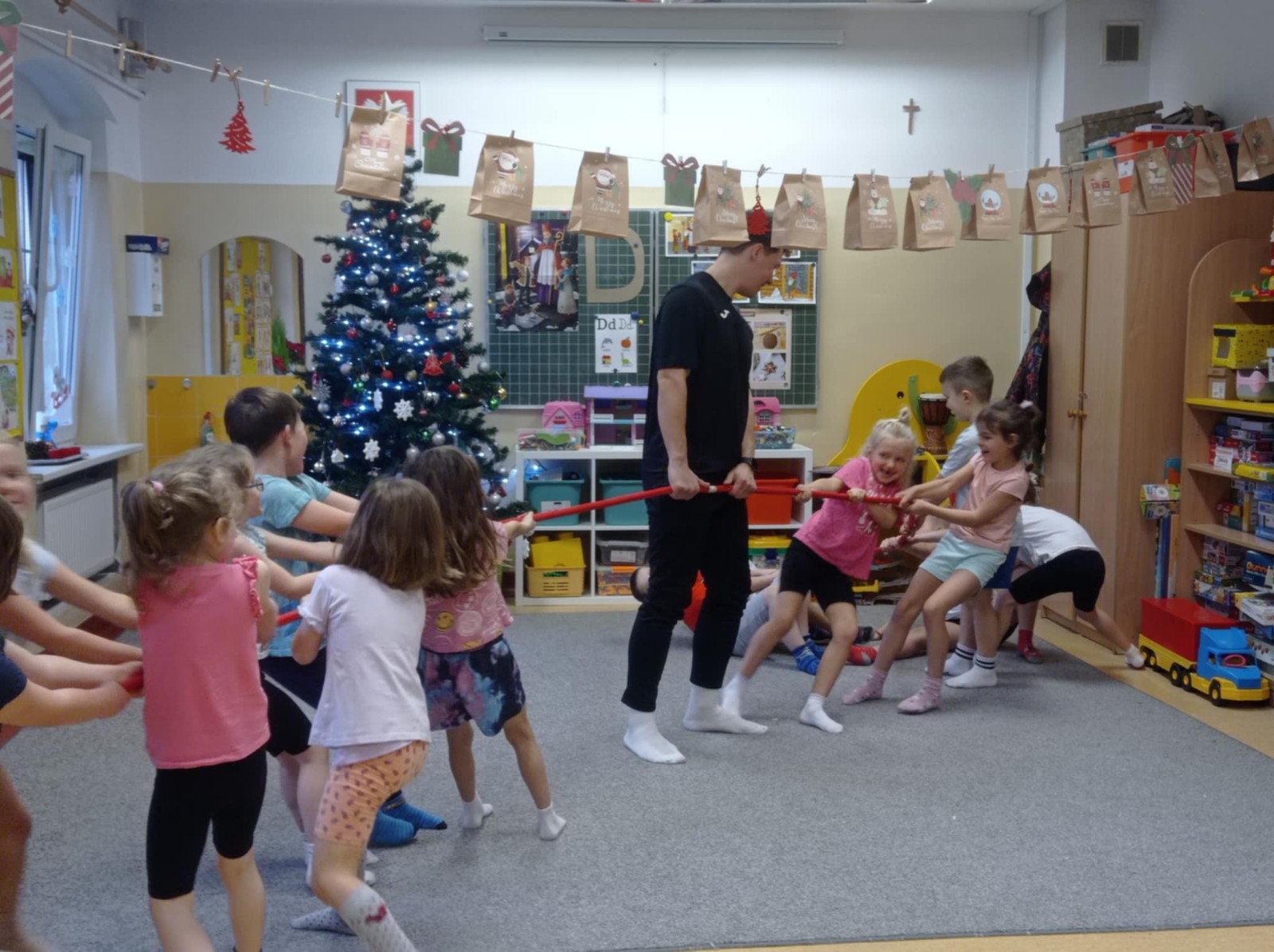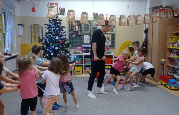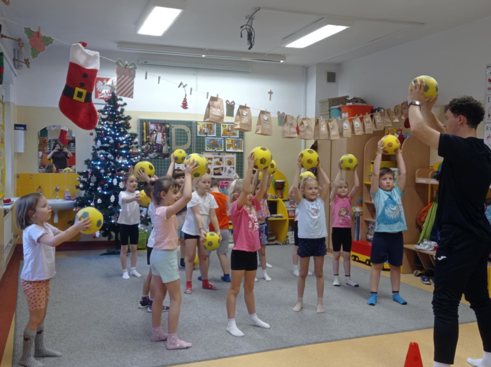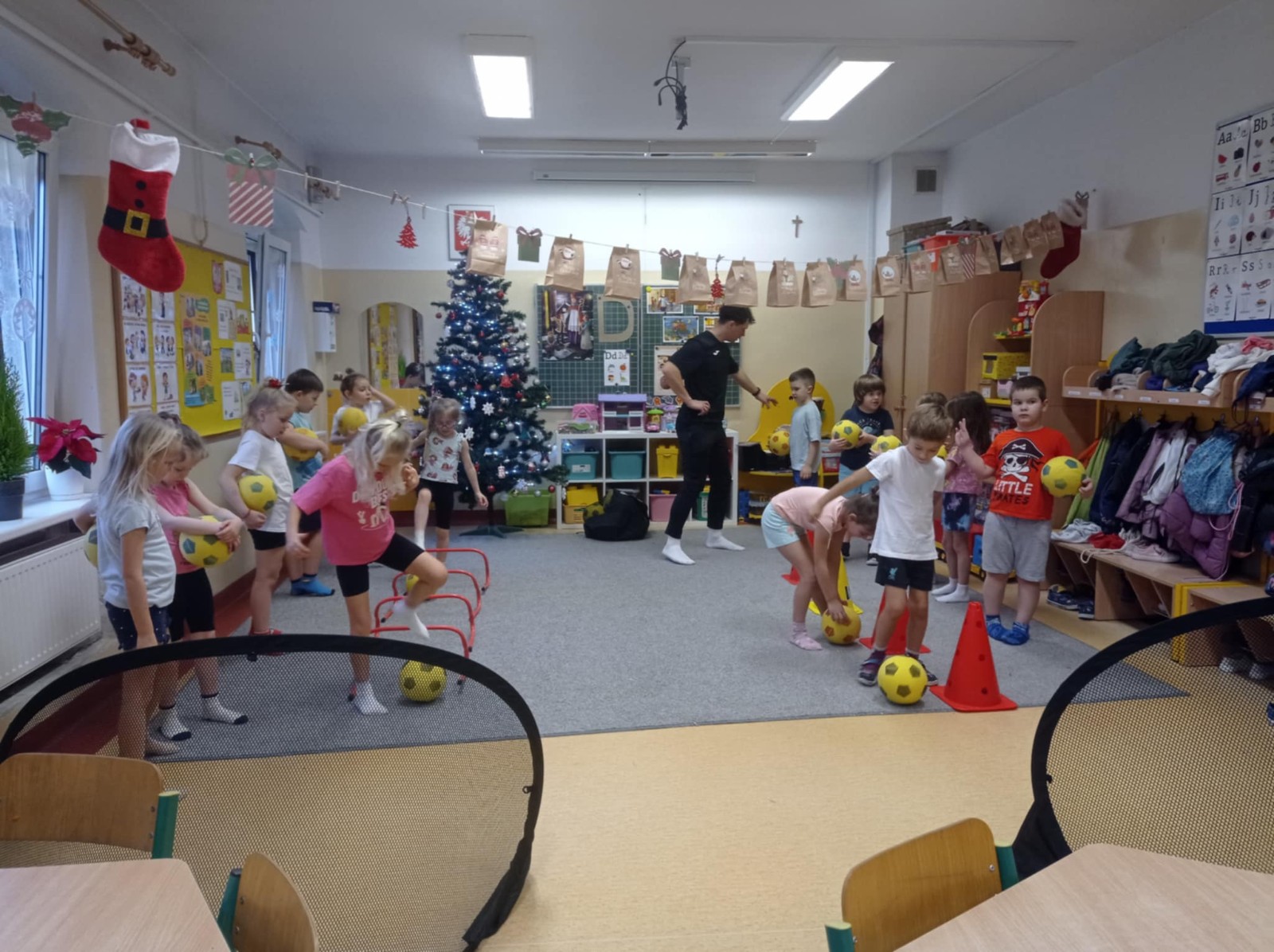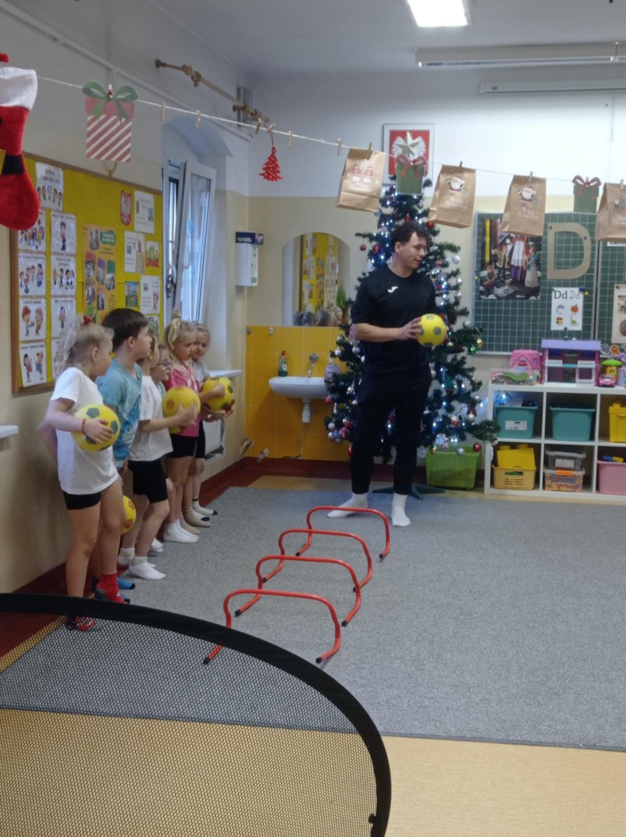 09 grudnia dzieci z naszego przedszkola brały udział w pokazowych zajęciach sportowych z piłko nożnej Klubu Lampart.