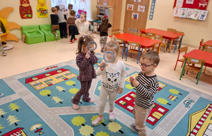 25 listopada grupa Biedronki zamieniła się w prawdziwych detektywów! W ramach listopadowego projektu English Detectives przedszkolaki wyruszyły na wyjątkową misję – odszukać brakujące części ciała misia. Wyposażone w lupy, z ogromnym zaangażowaniem przeszukiwały salę, odnajdując ukryte obrazki i rozwiązując przygotowane zagadki w języku angielskim.