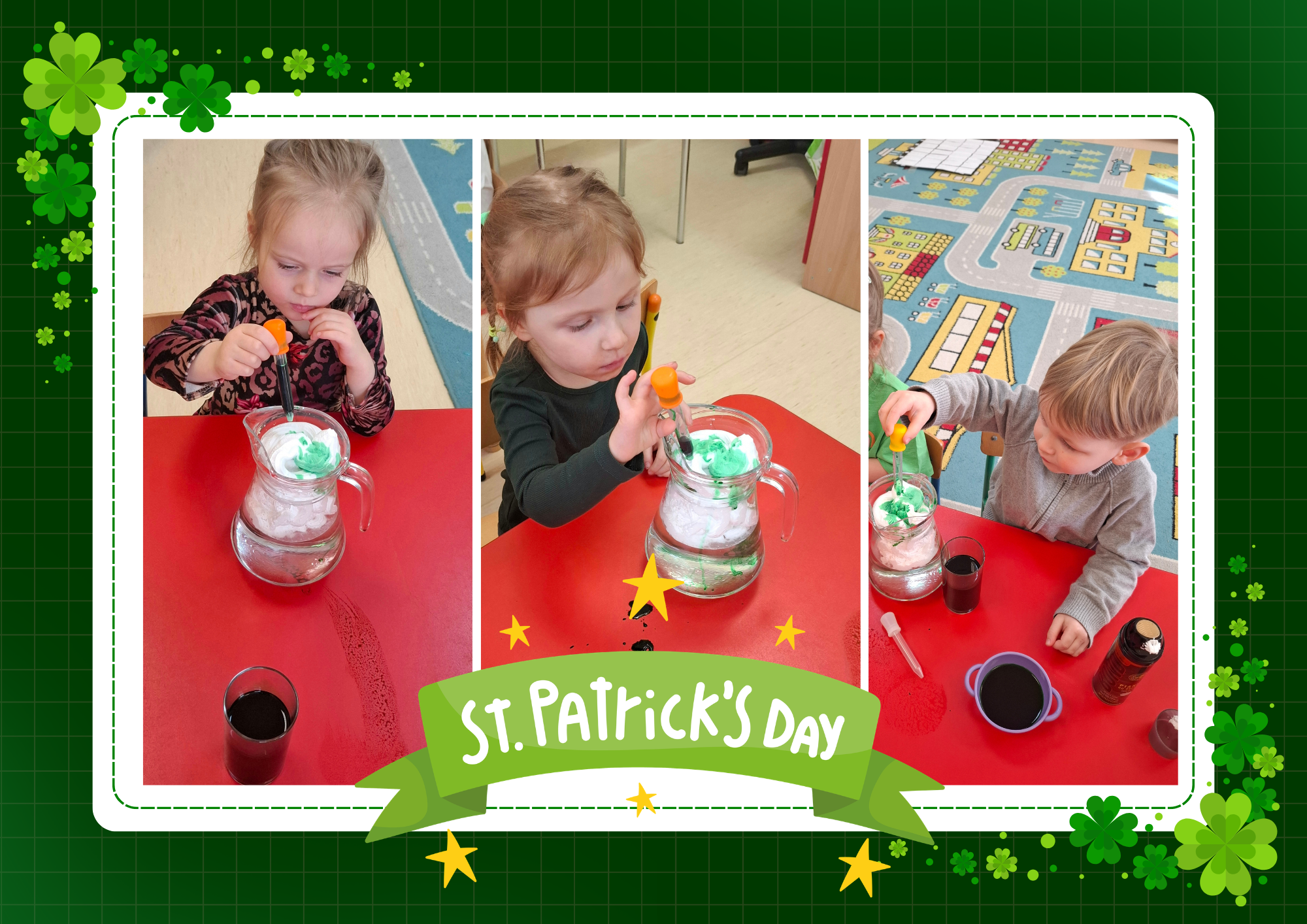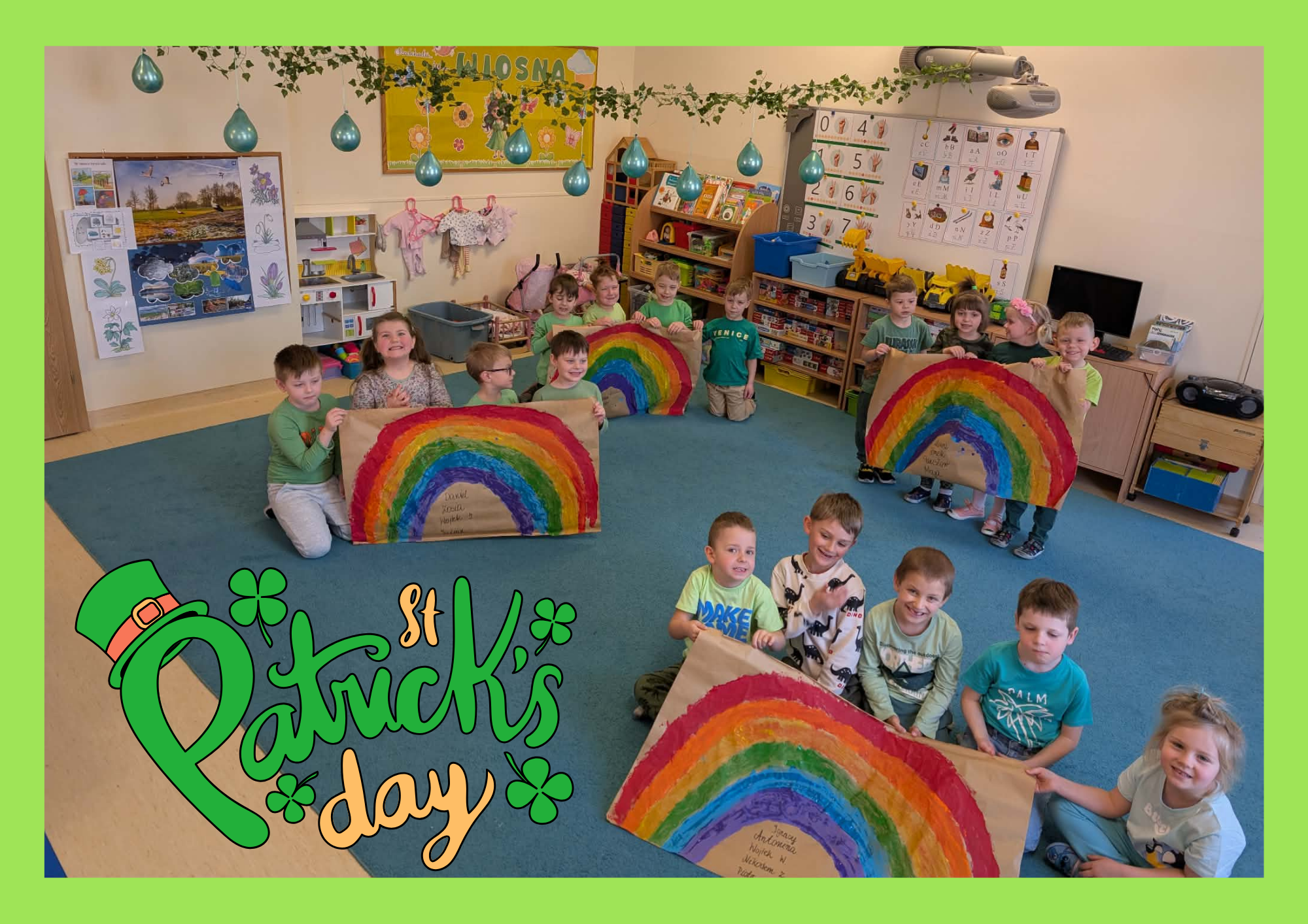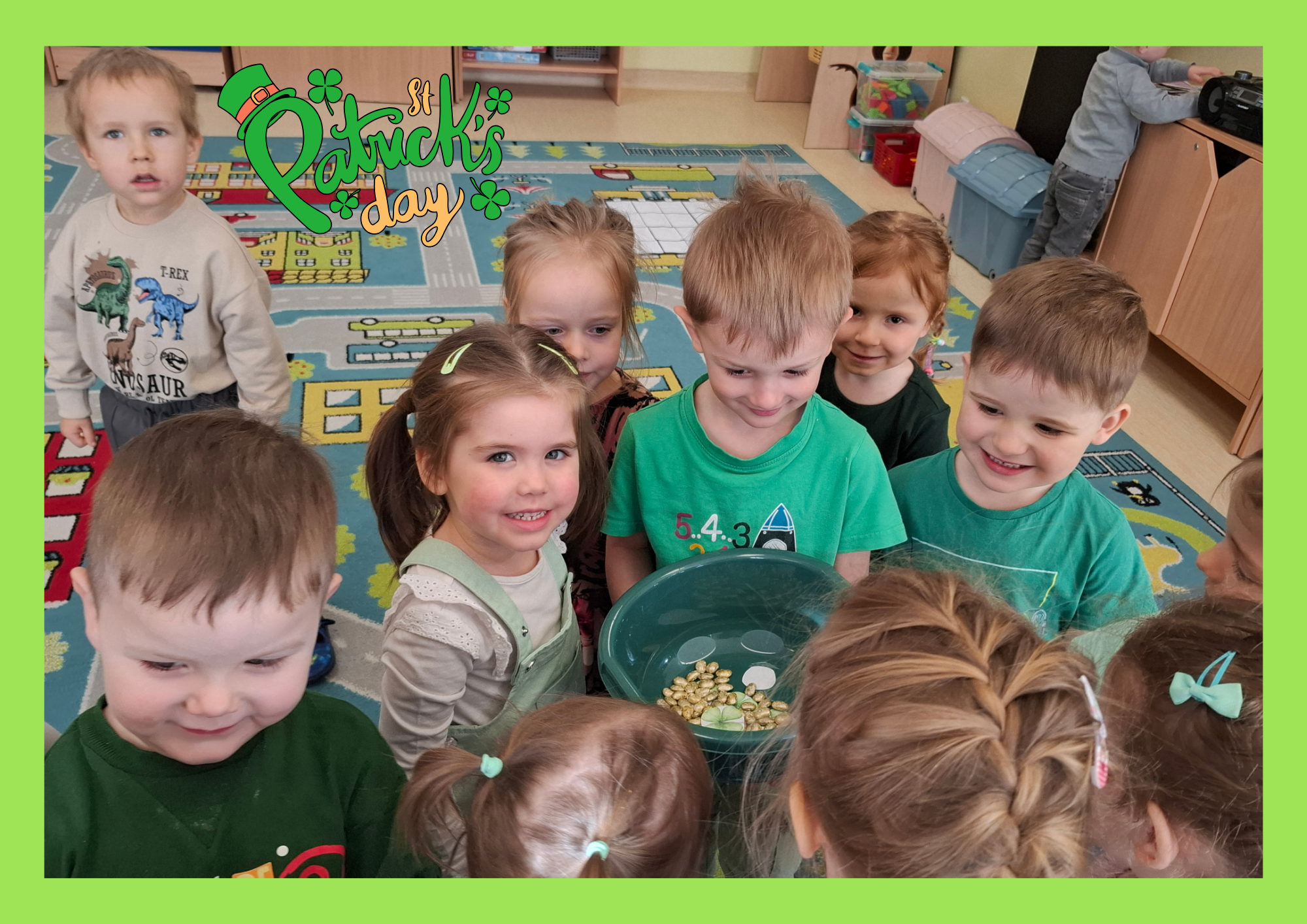 W dniach 17–18 marca nasze przedszkole wypełniło się radosną energią, a to wszystko za sprawą projektu edukacyjnego z okazji Dnia Świętego Patryka. Inicjatorkami tego niezwykłego wydarzenia były nasze anglistki Pani Natalia Frydrychowska oraz Pani Bożena Dzięcielska, które we współpracy z wychowawczyniami wszystkich grup stworzyły dzieciom przestrzeń do wielozmysłowego poznawania świata.