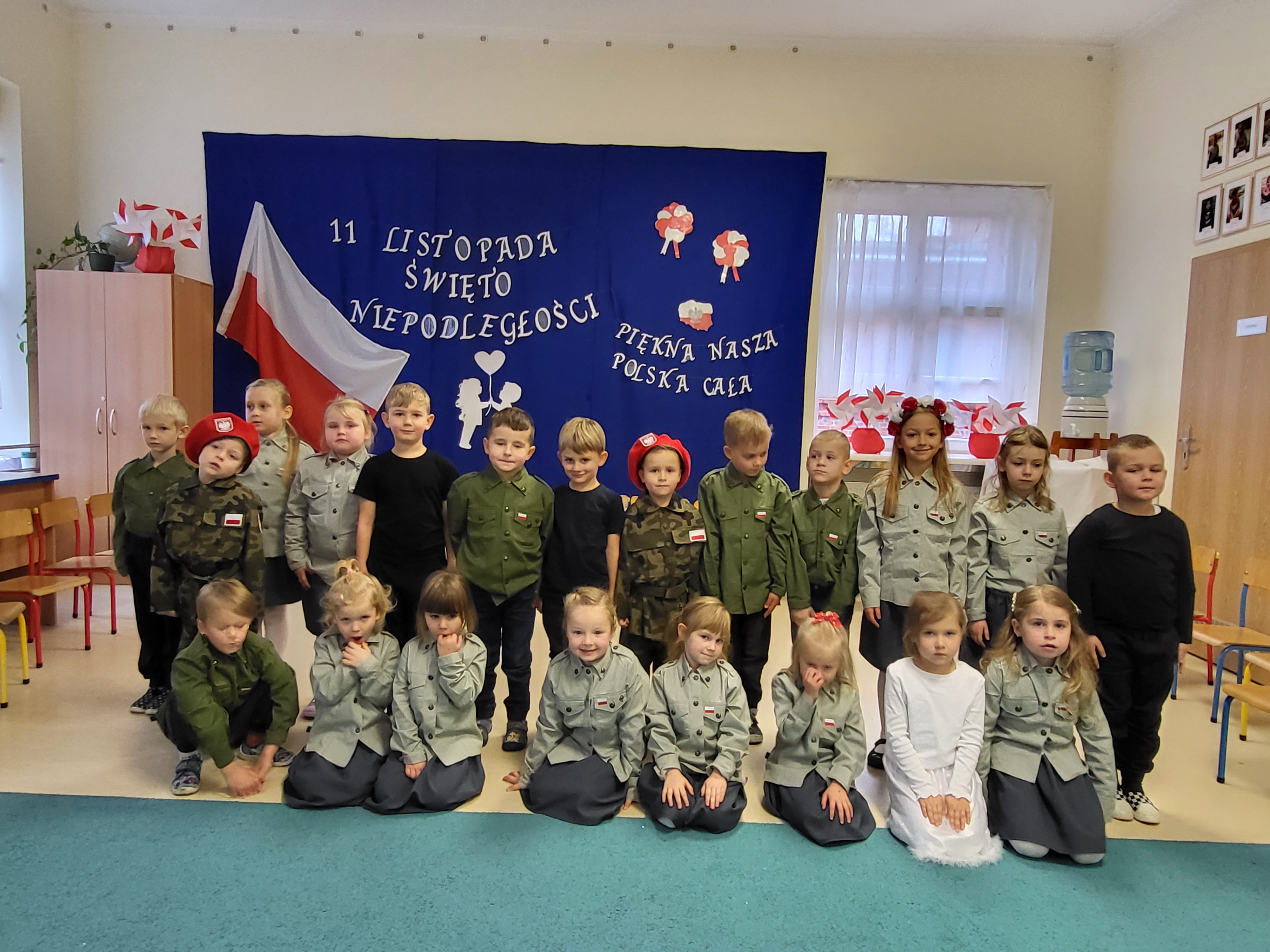 8 listopada nasze przedszkole świętowało kolejną rocznicę odzyskania przez Polskę Niepodległości. Uroczyste przedstawienie przygotowała grupa Jeżyki, która w symboliczny sposób przedstawiła losy naszego kraju i trudną drogę do wolności. Przedstawienie zakończyło się wspólnym odśpiewaniem hymnu, by wziąć udział w akcji "Szkoła do hymnu".
