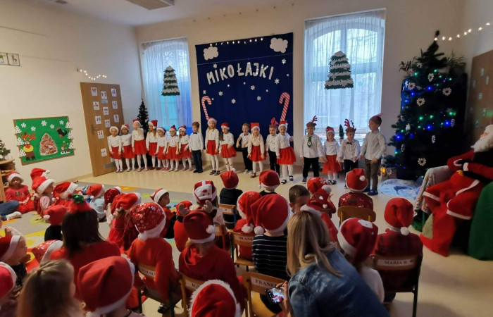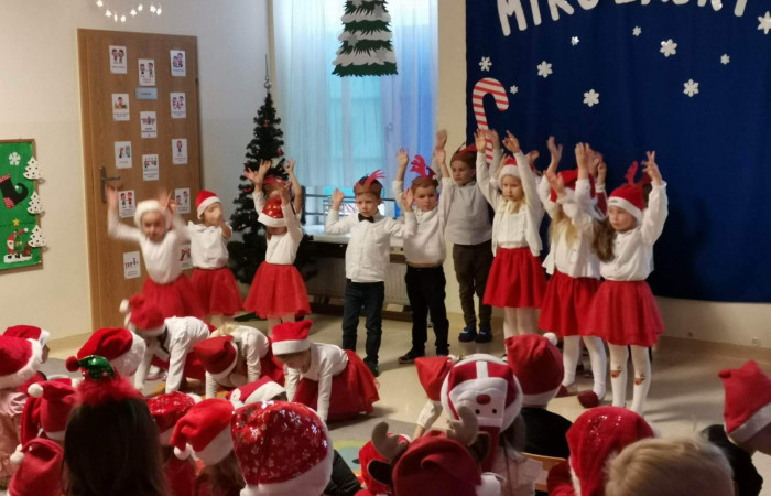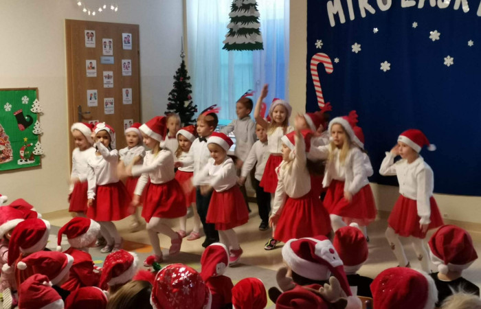 6 grudnia w naszym przedszkolu wiele się działo. Odwiedził nas Święty Mikołaj, który wraz z wszystkimi przedszkolaki oglądał występ grupy "Wiewiórki ". Na pamiątkę każda grupa zrobiła zdjęcie z Mikołajem a później wszystkie dzieci otrzymały słodkości. Mikołaj obiecał, że przyjdzie tu za rok. Pamiętajmy jednak, że musimy być grzeczni ![]()